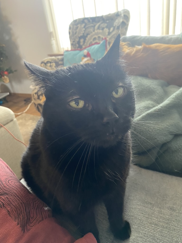 She broke into my garage when I was living with an ex GF. She ate all the dog food and we decided to let her stay in the house for the night until we could take her to a shelter the next day. That night she had a full litter of kittens behind the couch. Shelters will not take fresh kittens so we fostered them. I decided that we should just call her mama cat, because if we gave her a real name we would get attached. As the kittens grew we were able to find homes for all of them, but not mamas. I was afraid she wouldn’t be adopted since she was a black cat. At this point I had, in fact, become attached. So we kept her. When my ex and I broke up we decided that I should keep mamas. I had her from 2015-2025. She was the sweetest cat I’ve ever known. She loved snuggles, and was the most gentle with my daughters. She was my daughters’ first cat, and saw me through my breakup with my ex, meeting my wife, moving to Washington and having kids. Rest in peace Mamas. Ill miss you </3
